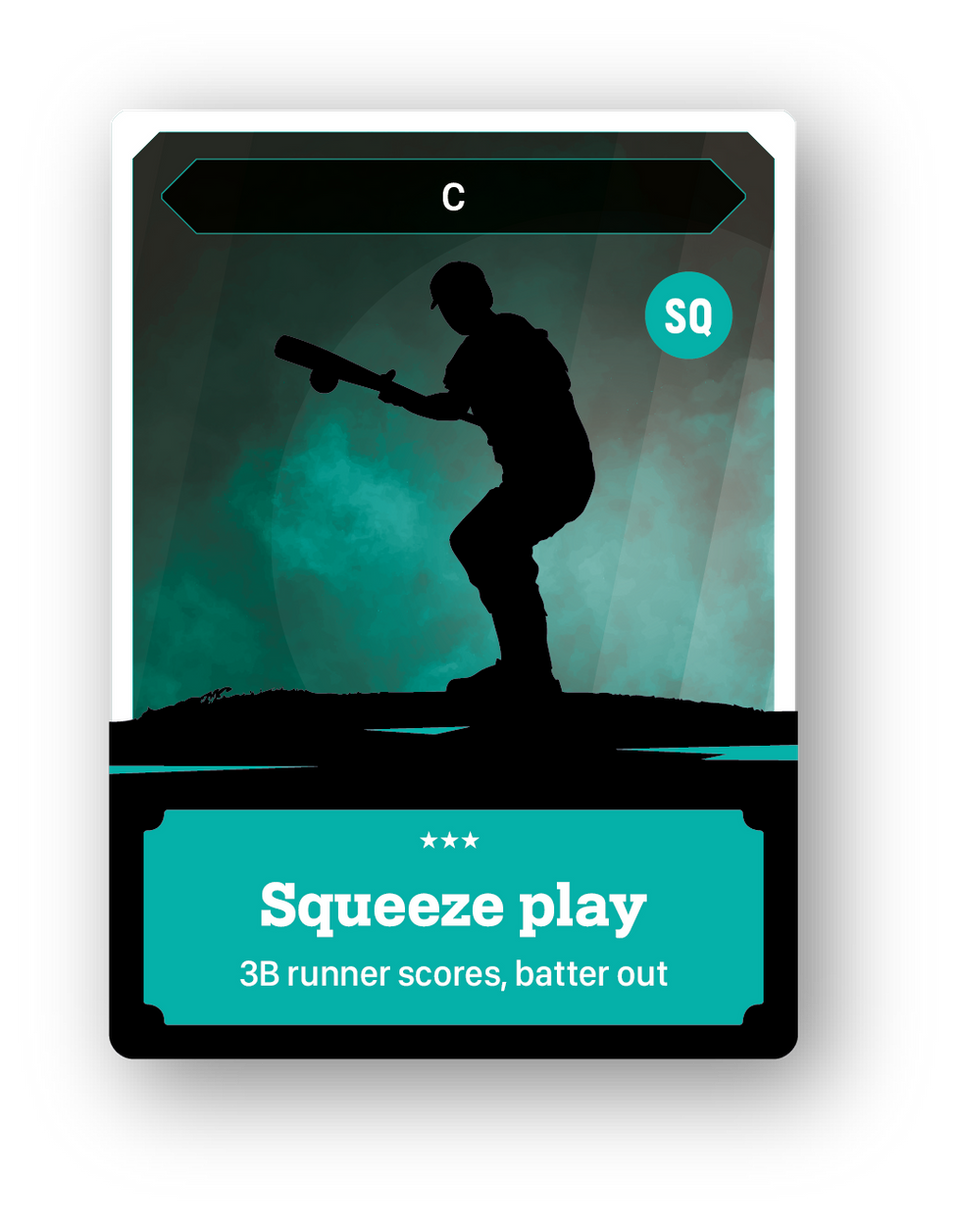 3 x 12-sided dice are available to use for defense and offense team. Throw your pitch and determine the outcome with your roll.